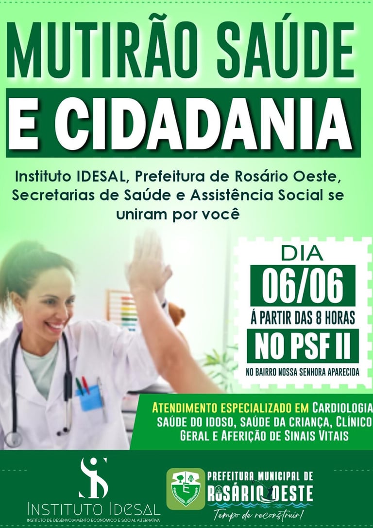 Vem aí o Mutirão Saúde e Cidadania em Rosário Oeste!